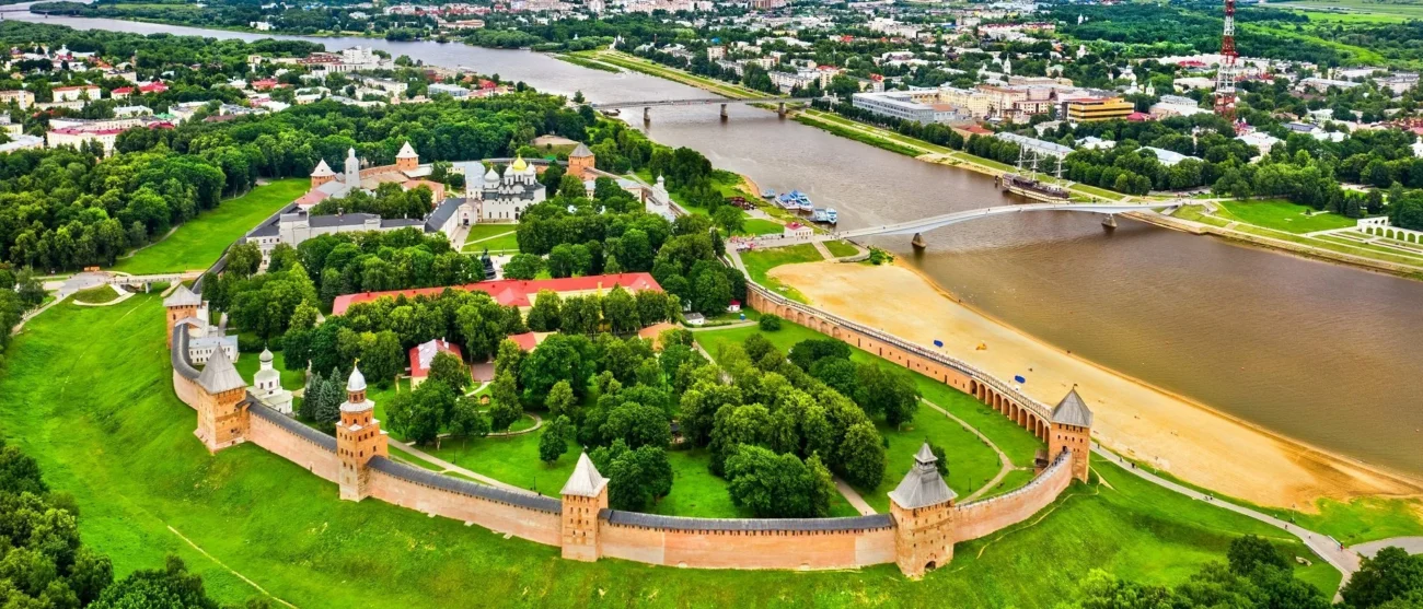 Великий Новгород – город-музей, в котором сохранилось множество исторических памятников, начиная с XI века. Памятники Новгорода и Новгородской области являются объектами Всемирного наследия ЮНЕСКО. Точное время основания города определить сложно, но официальной датой считается 859 год. На протяжении долгого времени Новгород был одним из самых влиятельных и богатых городов на Руси. Он был основан в двух километрах от истока реки Волхов, вытекающей из озера Ильмень, и река делила город на два района: Софийский на левом и Торговый на правом берегу. Кремль, или Детинец, находился на Софийской стороне и являлся центром города.